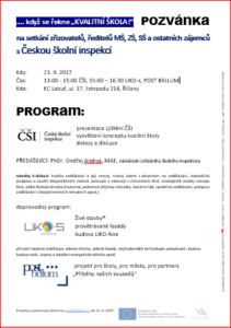POZVÁNKA na setkání zřizovatelů, ředitelů MŠ, ZŠ, SŠ a ostatních zájemců s Českou školní inspekcí